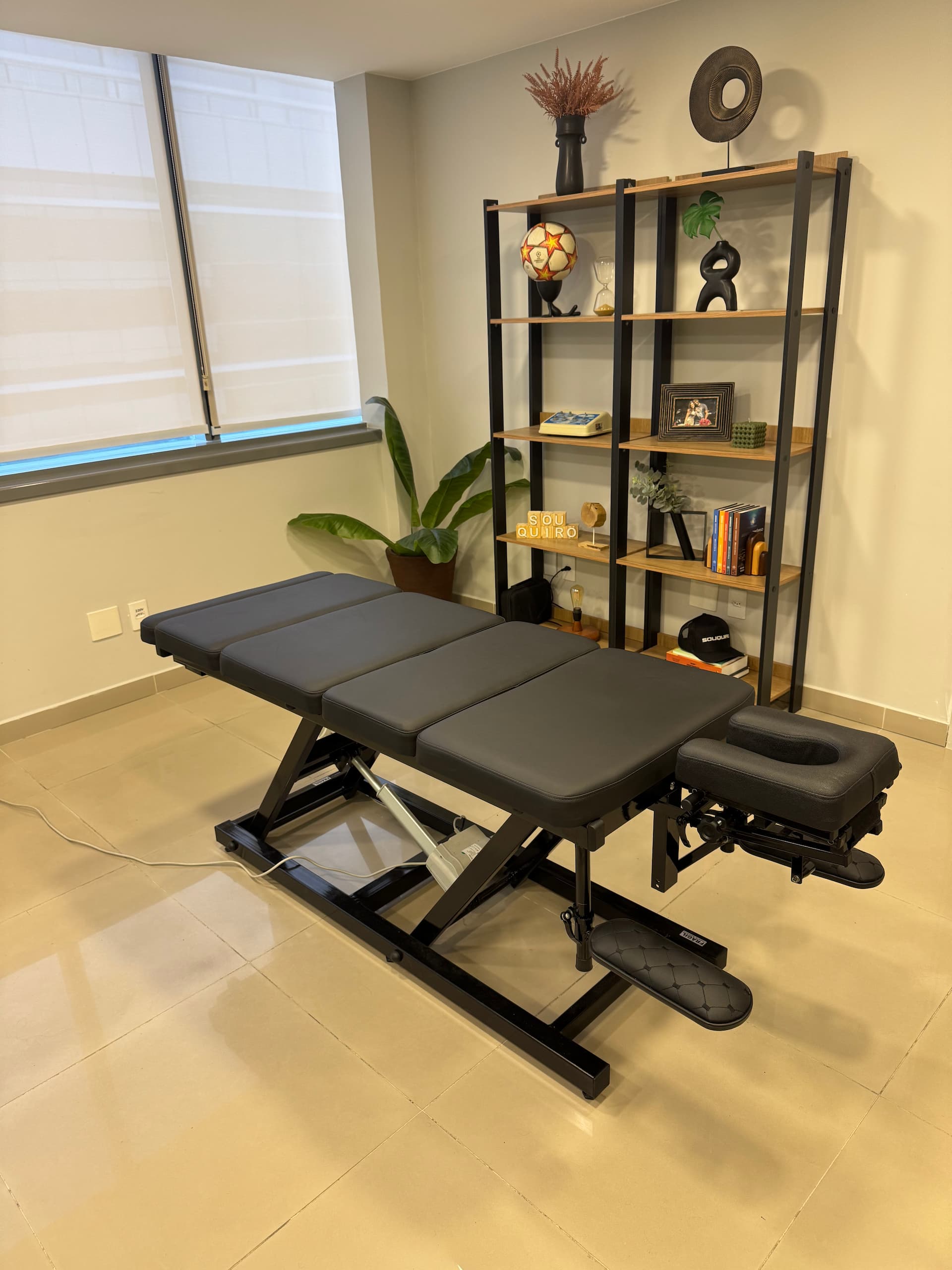 Ambiente amplo, climatizado e silencioso, com estética clean que transmite calma.               Utilizamos equipamentos próprios do universo da quiropraxia,